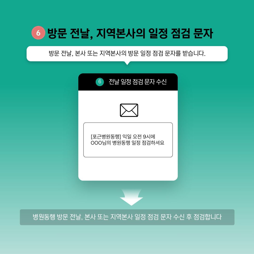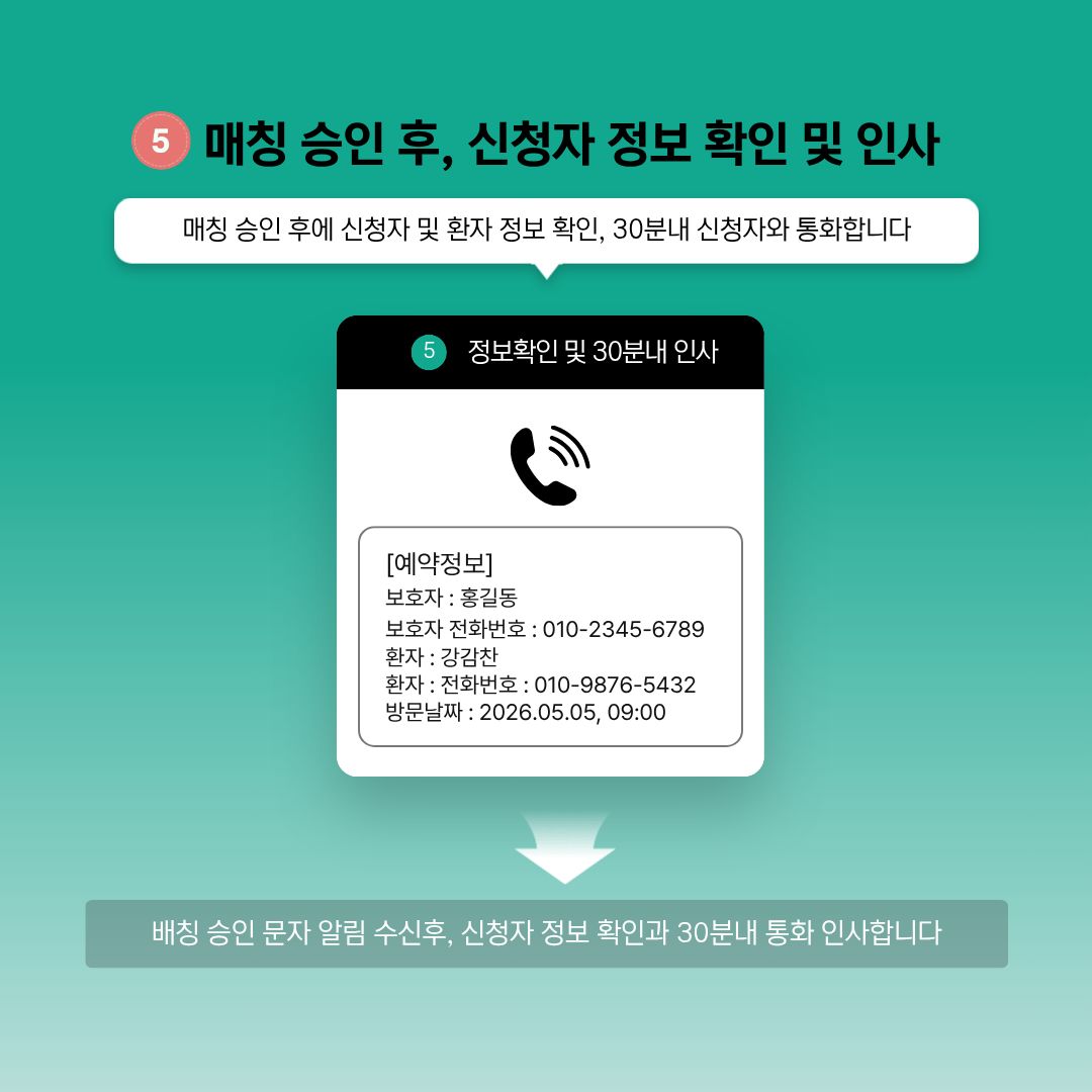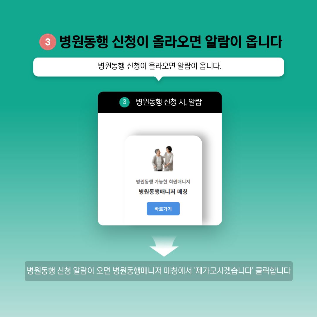 - 서비스 이용 시: 예약 정보(방문 예정 병원, 진료과, 예약 일시 등), 동행 관련 요청 사항